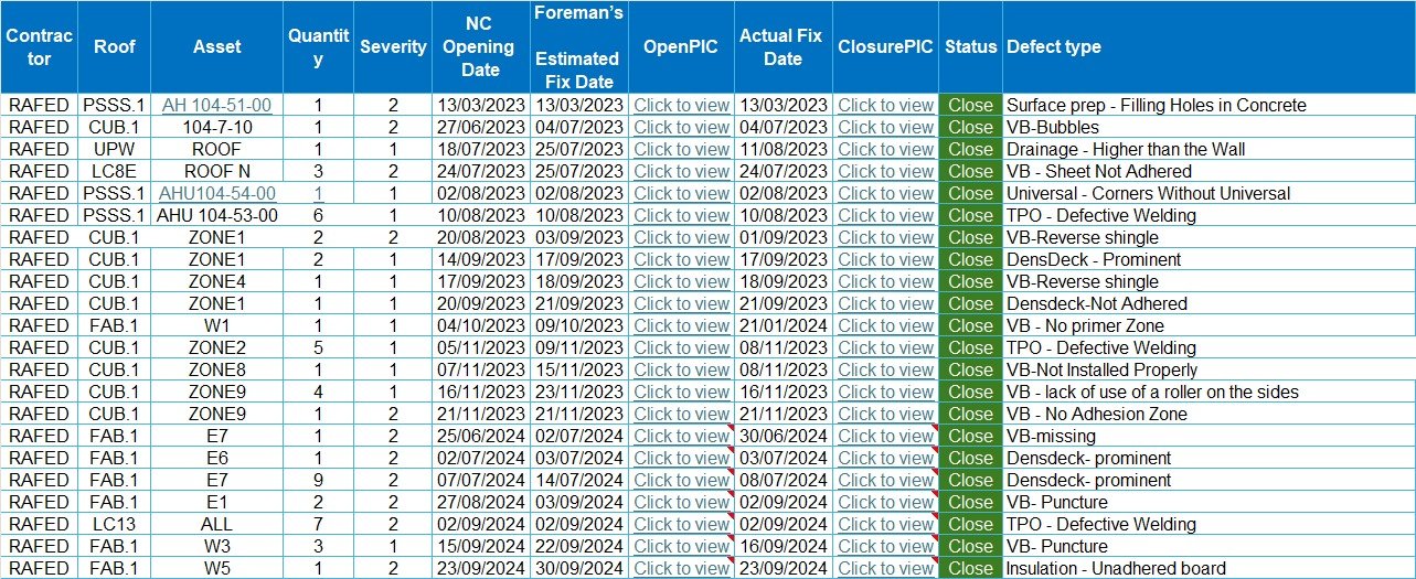 We utilize online quality reports reviewed weekly to promptly address and resolve non-conformance reports (NCRs) and corrective action requests (CORs), with a focus on investigating root causes.