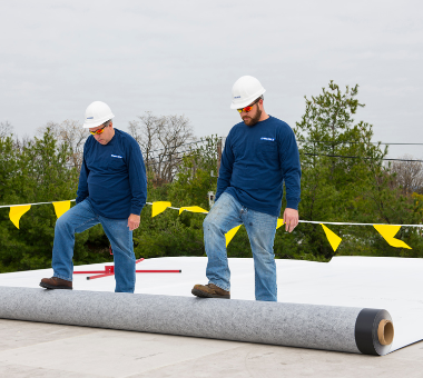 Sure-Weld TPO with Self-Adhering Technology (SAT) comes with a pre-applied adhesive for quick and easy installation.